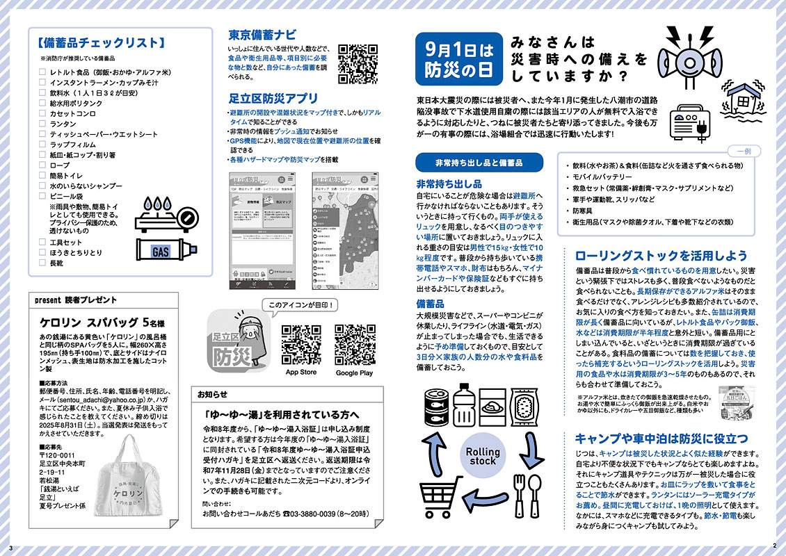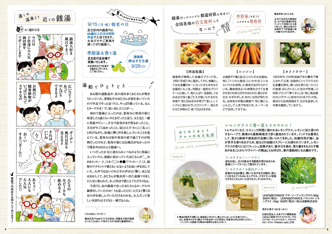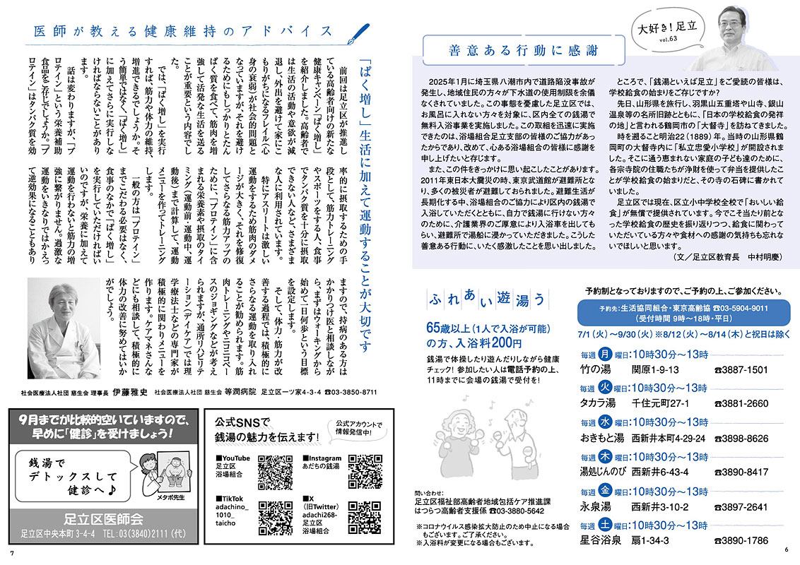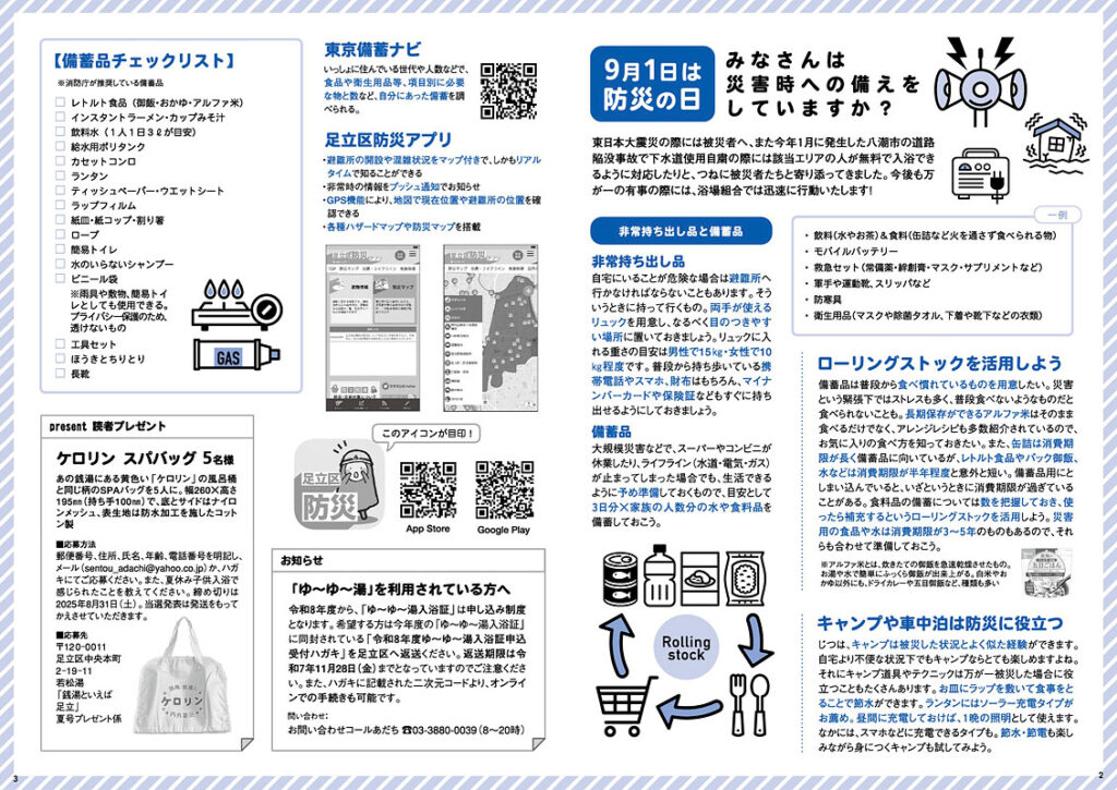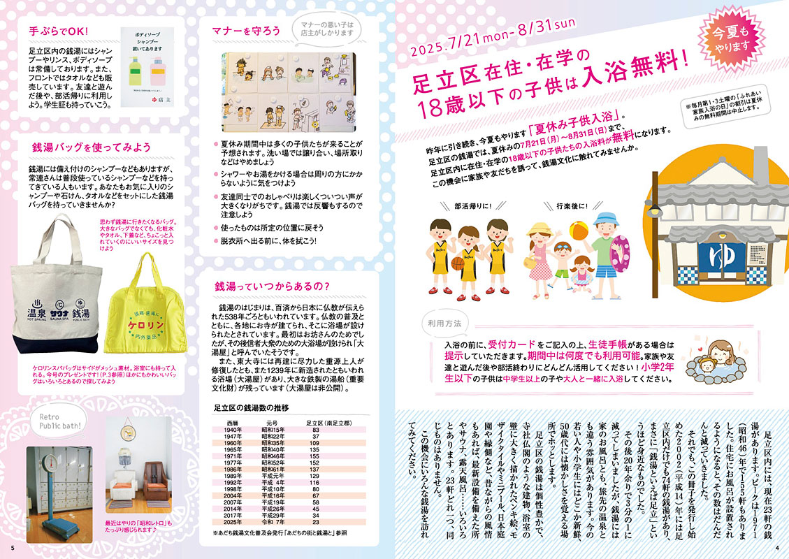 「銭湯といえば足立」は、足立区内の全銭湯・全駅・5つの大学・全図書館、公共施設(区役所、保険総合センター、西新井ギャラクシティ、区民事務所、住区センター、地域学習センター、郷土博物館、子育て支援センター)、ご協力いただいている書店、飲食店、整骨院、量販店などで配布中。